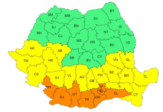 ”În judeţele Mehedinţi, Dolj, Olt, Teleorman, Giurgiu, Călăraşi, Ilfov, precum şi în municipiul Bucureşti valul de căldură va persista. Va fi caniculă, iar temperaturile maxime vor fi în general de 37…38 de grade. Disconfortul termic va fi accentuat, iar indicele temperatură-umezeală (ITU) va depăşi pragul critic de 80 de unităţi. Local, minimele termice nu vor coborî sub 22 de grade, astfel că vor caracteriza o noapte tropicală”, arată ANM.