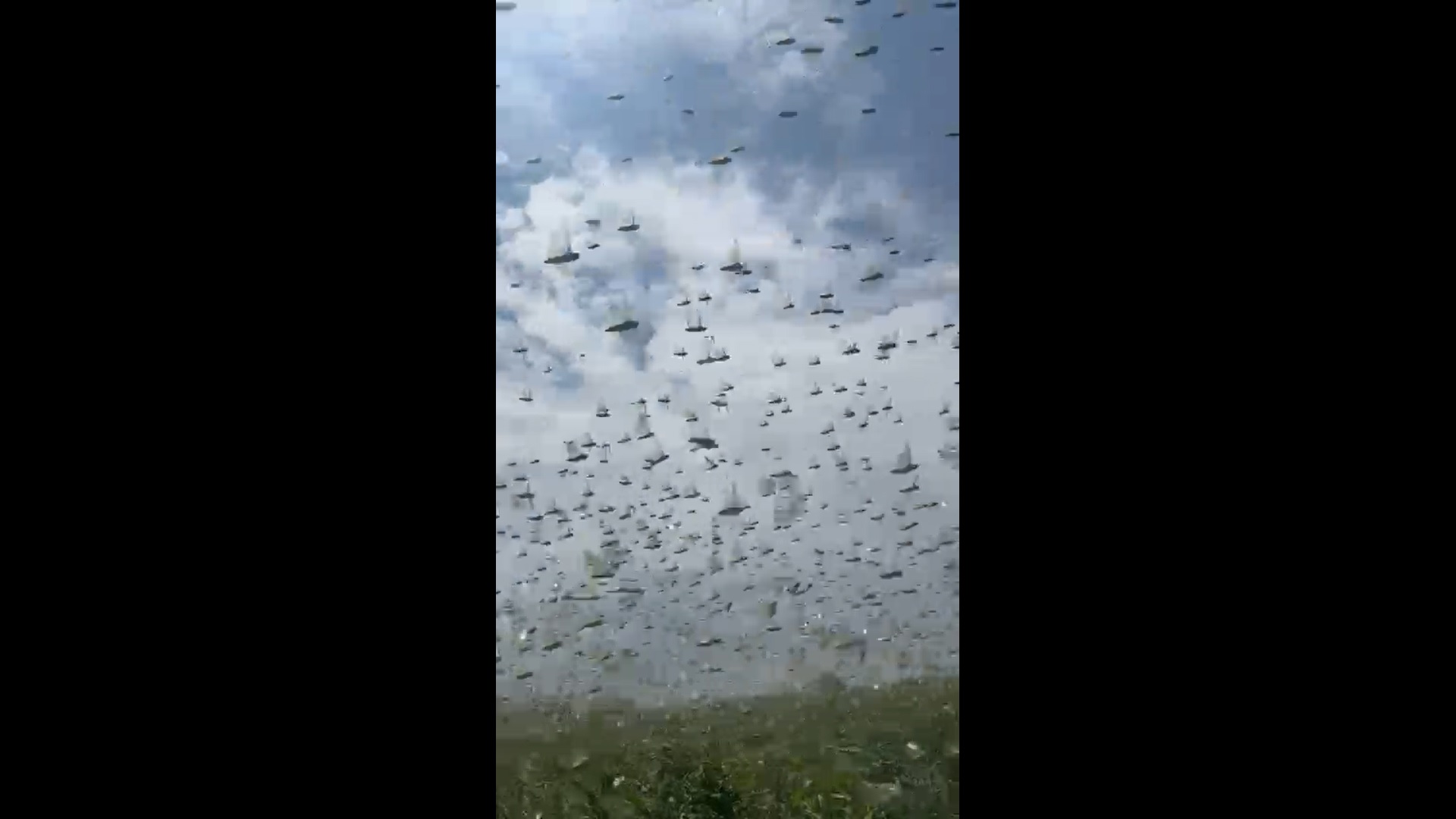 În imagini bărbatul a surprins mii de lăcuste care acoperă albastrul cerului, în jurul orei 20.