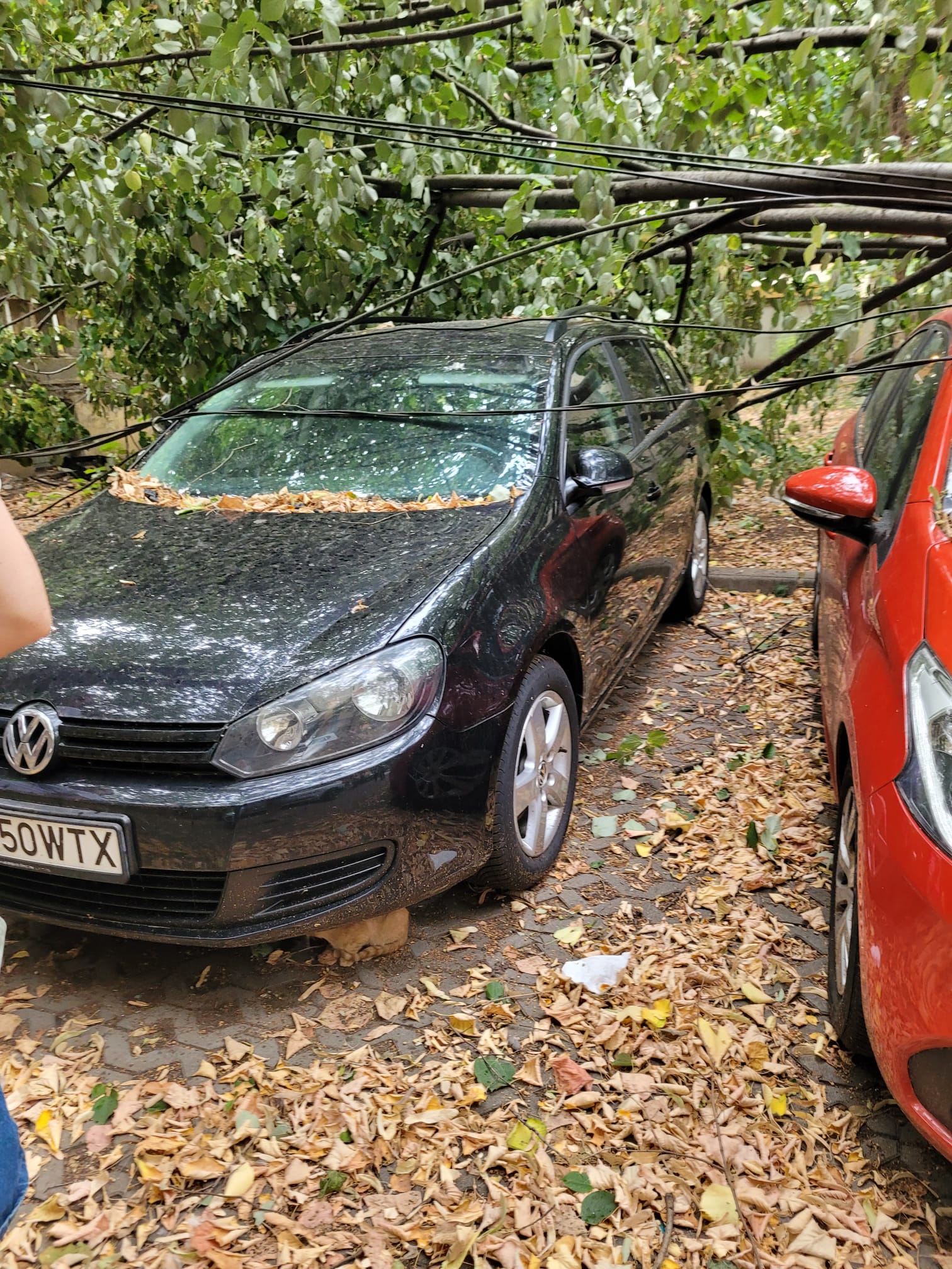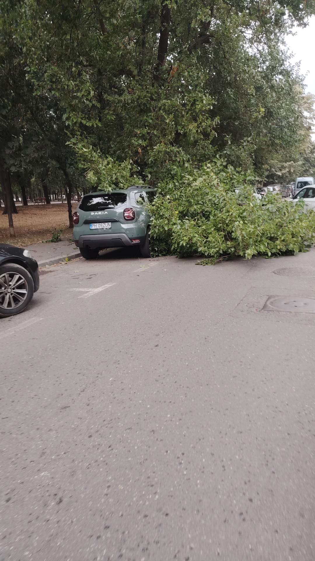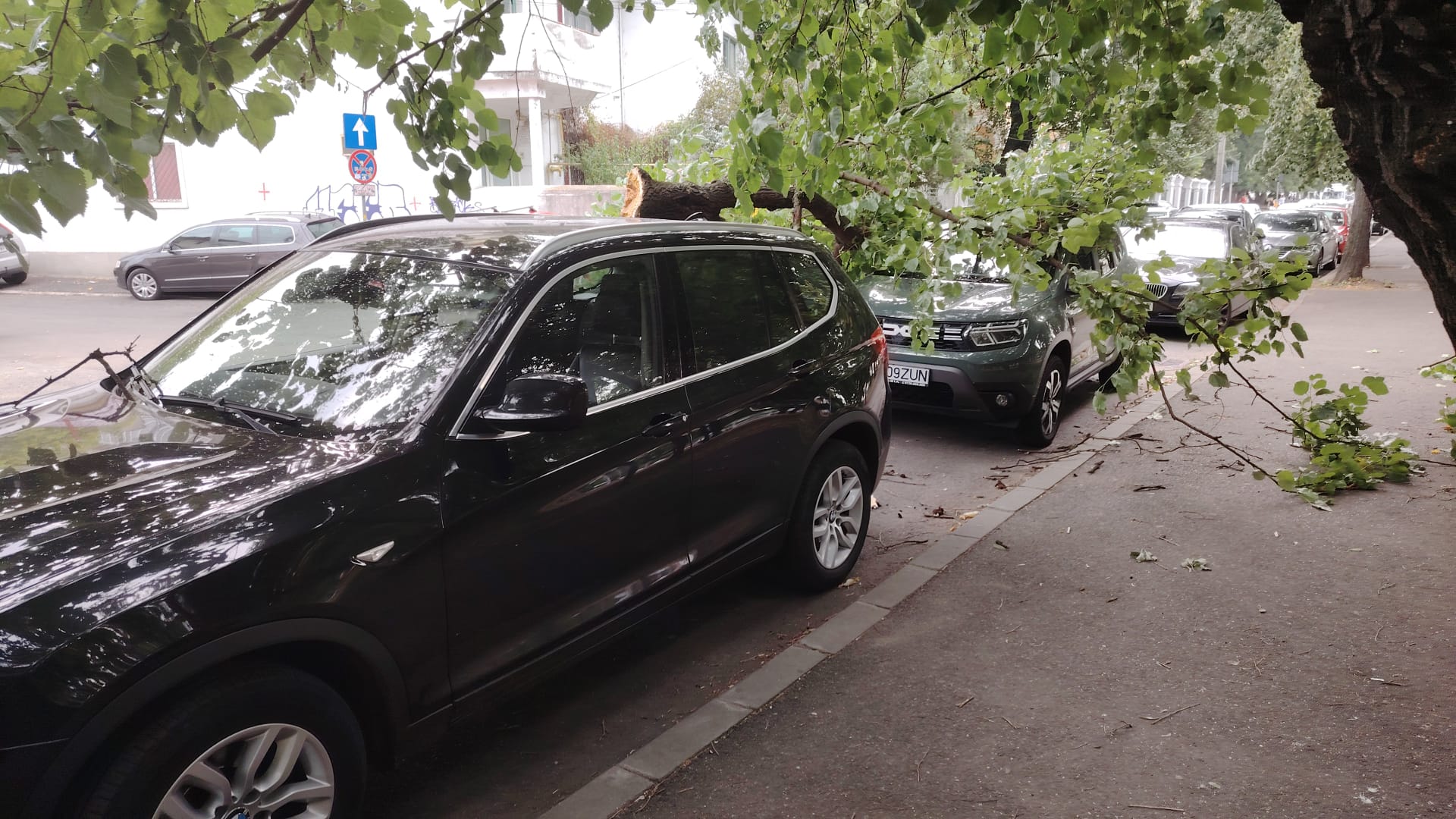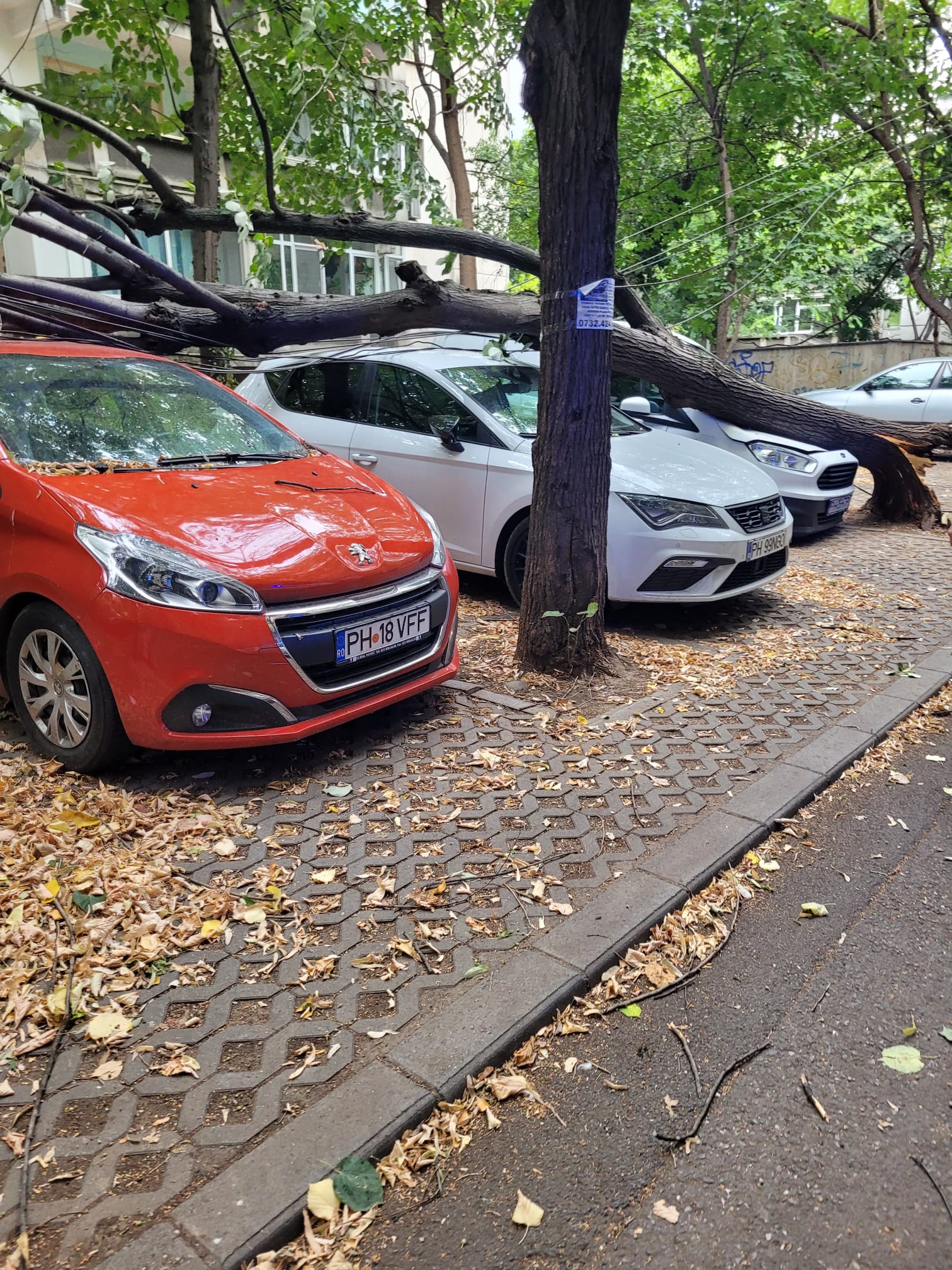 O situație similară a fost înregistrată și pe strada Bogdan Petriceicu Hașdeu, unde o creangă groasă a picat peste mașinile parcate.