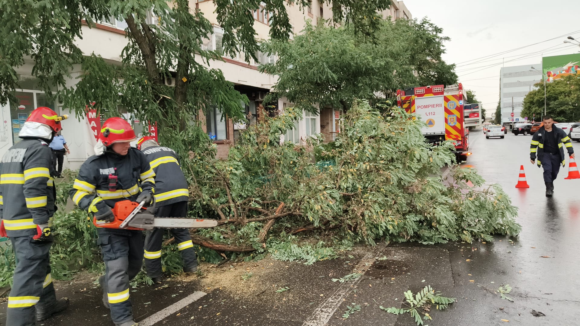 UPDATE: Potrivit ISU Prahova, pompierii au intervenit și pe strada Cuza Vodă din centrul Ploieștiului pentru degajarea unui copac doborât de vântul puternic.