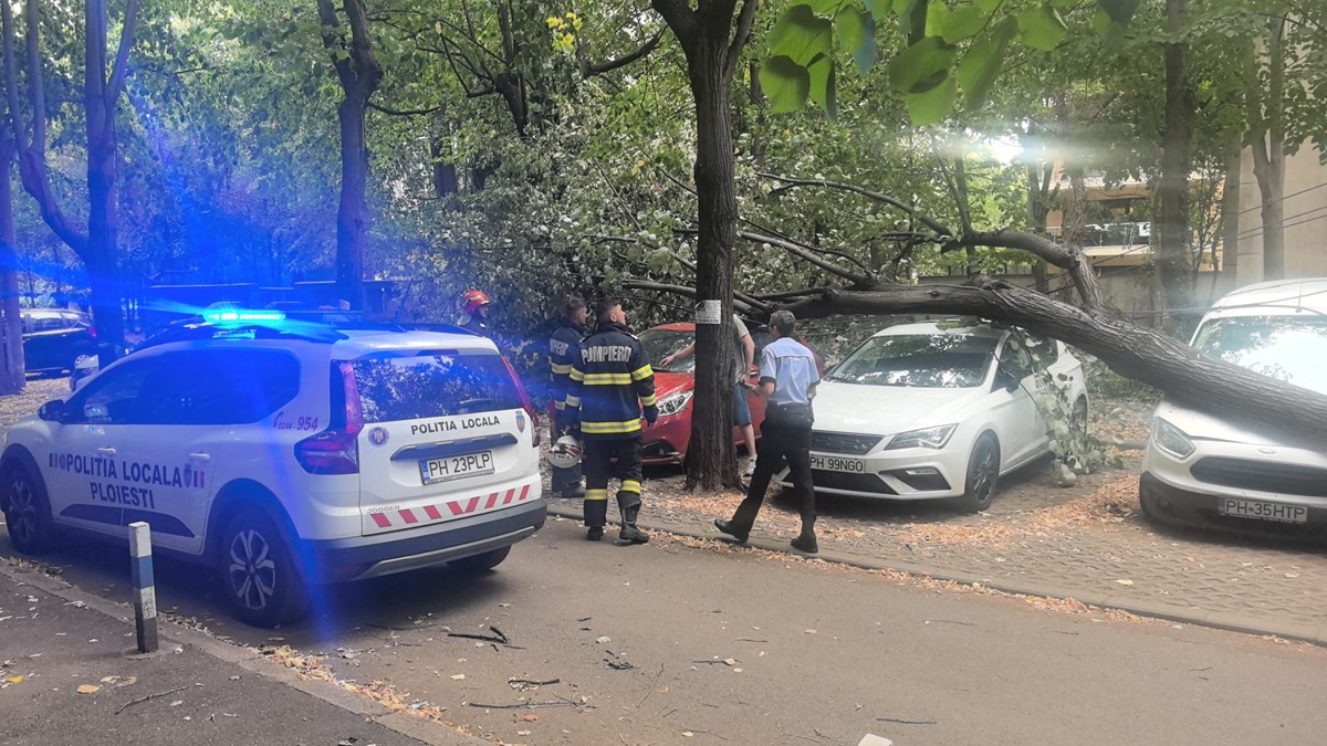 Vântul puternic a început să creeze probleme în această după amiază în Ploiești. Pe strada Mihai Eminescu din zona de Sud a Ploieștiului un copac a fost doborât și a avariat mai multe mașini.
