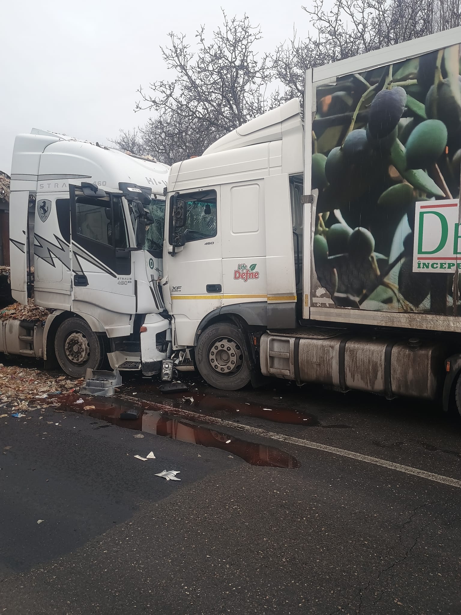 Două camioane au fost implicate într-un accident rutier. Din fericire, șoferii acestora au scăpat cu răni ușoare și nu a fost necesar să fie transportați la spital.