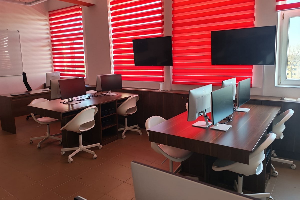 Laborator, echipat cu stații de lucru performante, servere dedicate pentru proiecte complexe și infrastructură de rețea de mare viteză