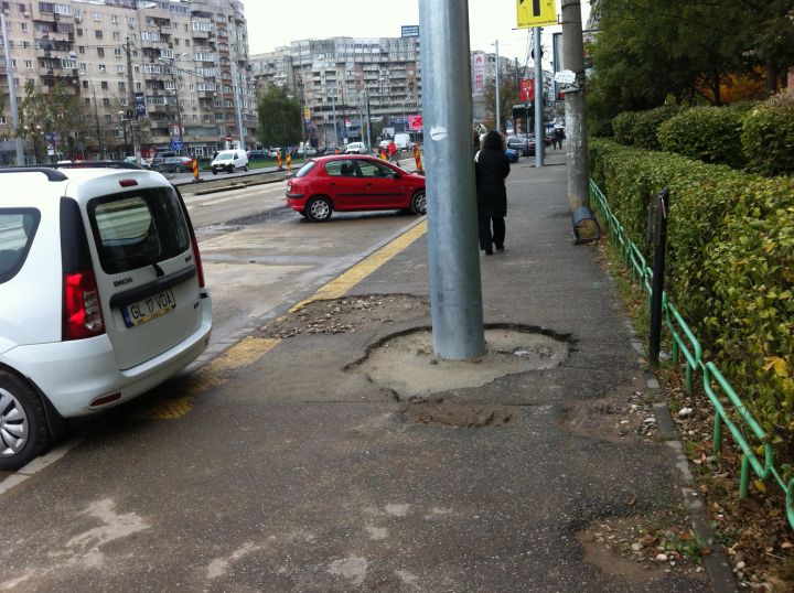 În momentul în care au montat stâlpii pentru tramvai, muncitorii au măcelărit la propriu parcarea de pe strada Gheorghe Doja. Pe sensul de mers BCR-Caraiman, pentru montarea fiecărui stâlp au fost făcute câte două gropi. Astfel că, pentru remedierea greşelii şi anume asfaltarea parcării, locatarii blocurilor de pe strada Gheorghe Doja vor avea de îndurat încă odată zgomotul produs de o serie de utilaje grele. Vezi mai jos imagini: