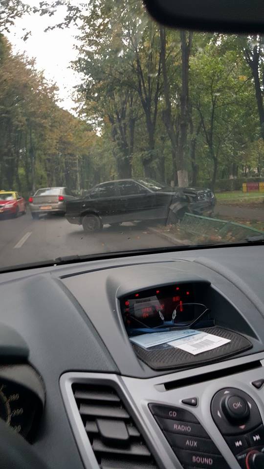 În această dimineață, pe strada Cameliei din Ploiești s-a produs un accident rutier. Un șofer a derapat și a intrat cu mașina în gardul de protecție al spațiului verde.