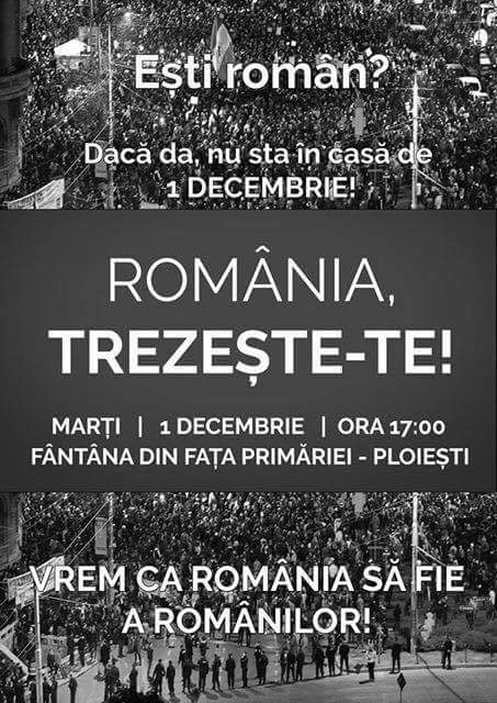 Sute de ploieșteni, în special tineri, și-au anunțat prezența astăzi la un miting în centrul Ploieștiului sub sloganul România, trezește-te!