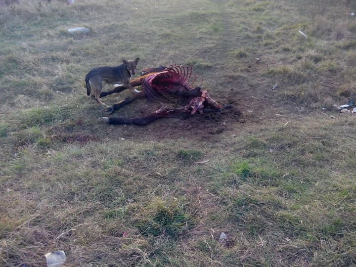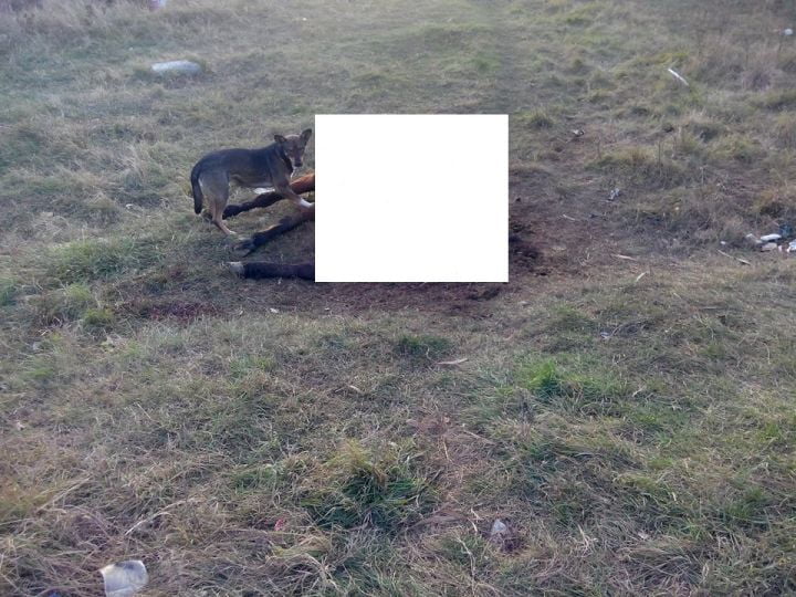 Potrivit informațiilor noastre, animalul ar fi murit la scurt timp după ce polițiștii și inspectorii DSV s-au deplasat la fața locului și a fost abandonat de proprietari pe un câmp la marginea Ploieștiului. Mai exact în zona situată între targul auto de pe DN1 B și intrarea în satul Țânțăreni. Vă informăm că imaginile de mai jos vă pot afecta emoțional: