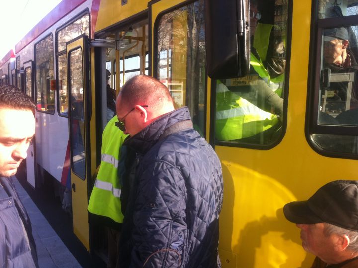 Plecarea tramvaiului 101 a avut loc din stația de la Spitalul Judetean. Primii călători au fost chiar aleșii, in frunte cu primarul interimar al municipiului, Iulian Teodorescu. Toată lumea s-a îmbarcat sub îndemnul ,,Urcați in vagoane,,.