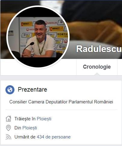 Pe pagina de Facebook, la prezentare, Lucian Rădulescu a trecut ”consilier Camera Deputaților Parlamentul României”.