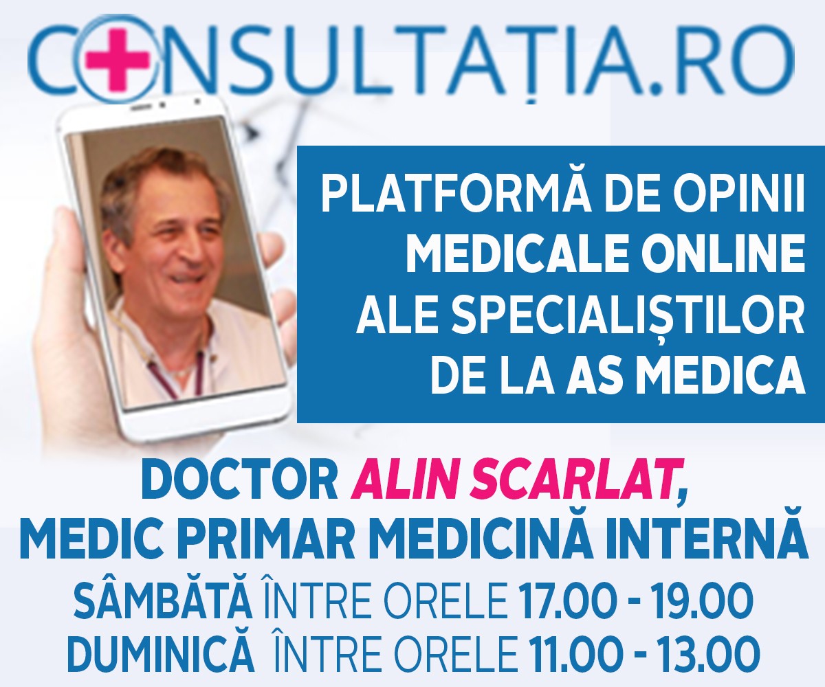 www.consultatia.ro este platformă care îți oferă posibilitatea de a intra în contact de la distanță cu unul dintre cei mai cunoscuți medici prahoveni, Alin Scarlat, medic primar, doctor în medicină internă.