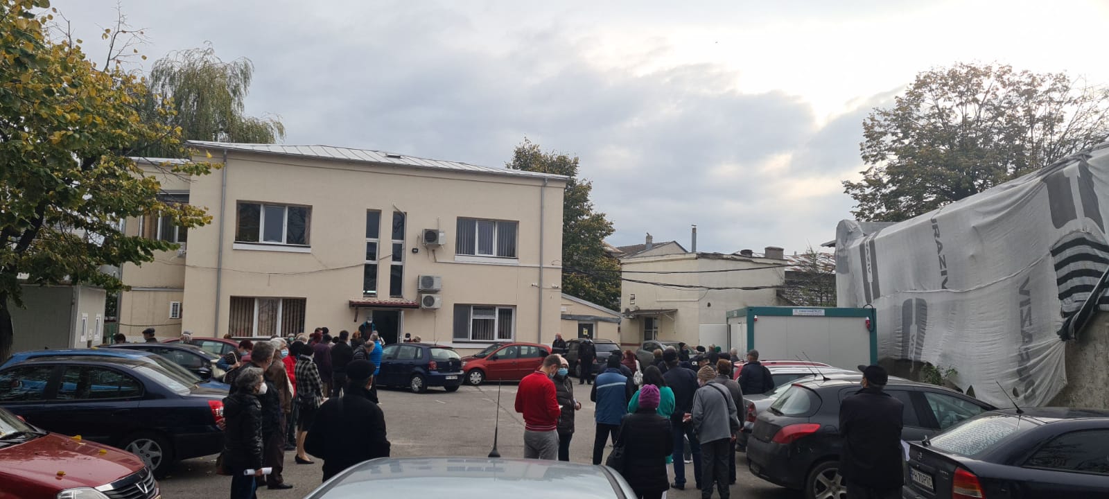 Un cititor ne-a trimis imagini surprinse în această dimineață, cu o coadă uriașă formată în curtea spitalului, așteptând să li se facă testul covid, cu următorul mesaj:
