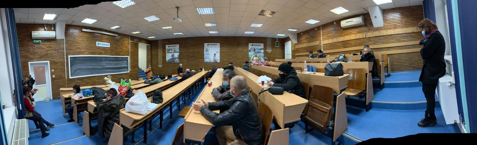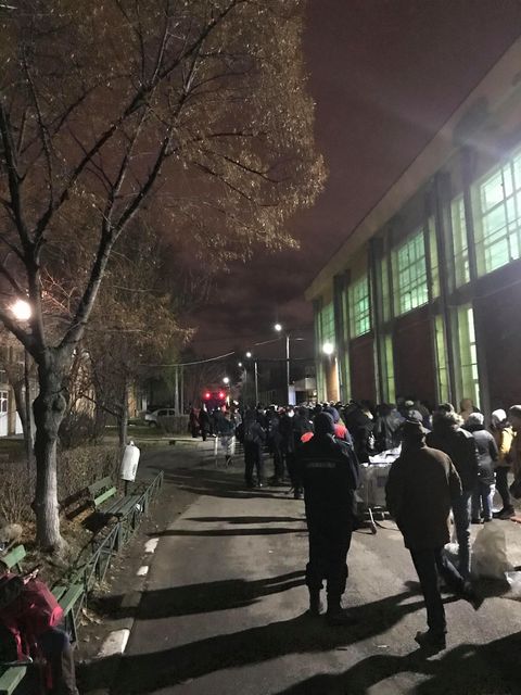 Sunt încă foarte multe persoane care așteaptă, în jur de 600, la ora 7. Unii dintre noi am reușit să intrăm în amfitreatre, însă și aici este frig. Este bătaie de joc…
