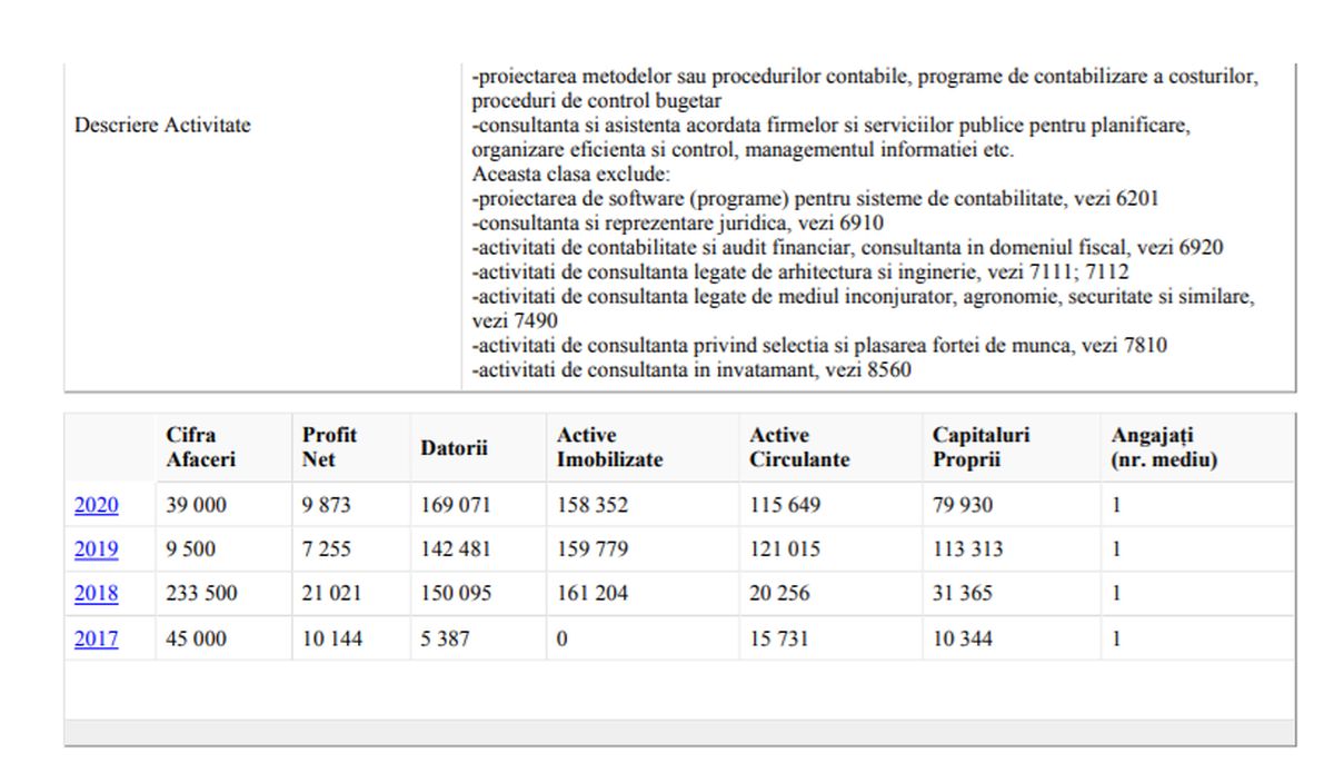 Interesant este și istoricul firmei de consultanță, care are un singur angajat declarat. Din 2017 și până în prezent, MKOFFICEONE CONSULTING S.R.L figurează cu 6 cumpărări directe atribuite,  iar anul trecut a avut o cifră de afaceri de numai 39.000 de lei. Adică mai puțin de jumătate din cât câștigă acum în urma contractului cu primăria din Ariceștii Rahtivani.