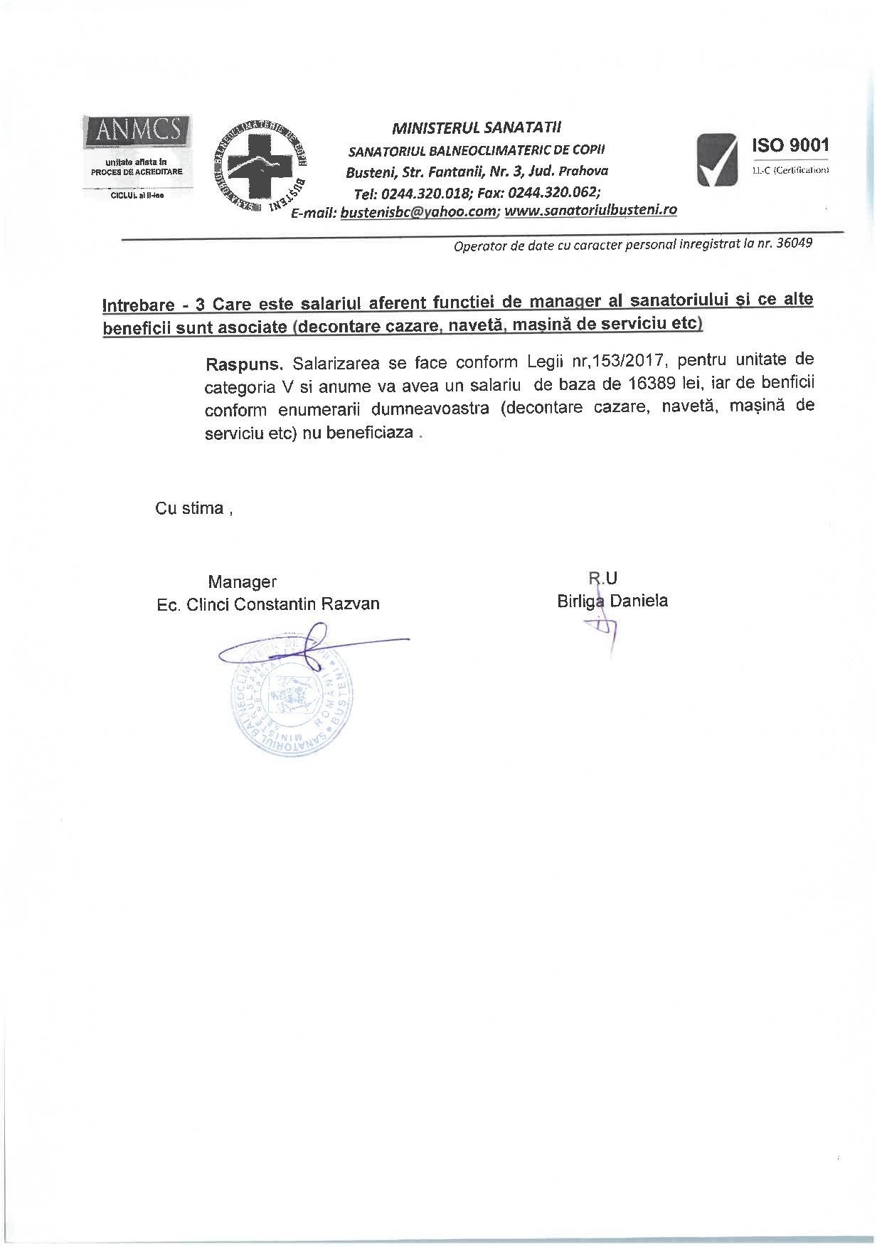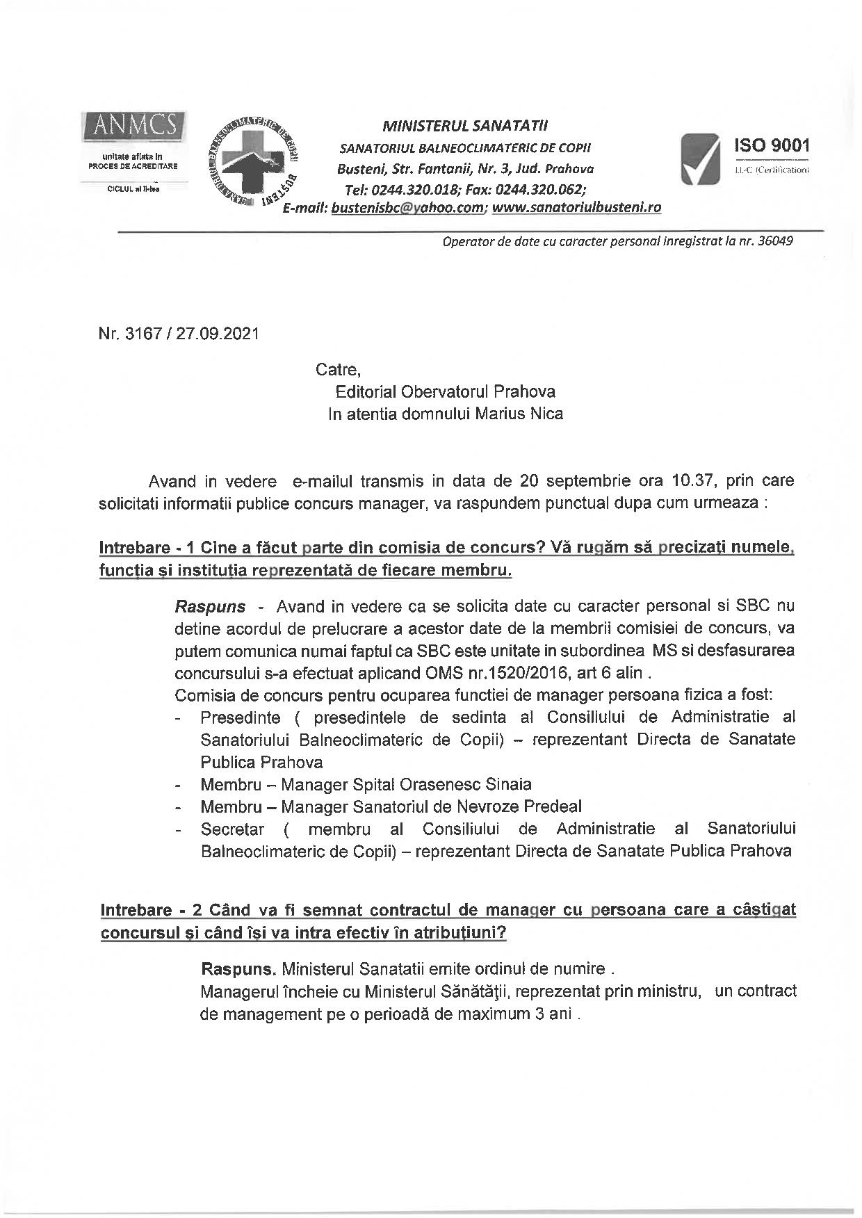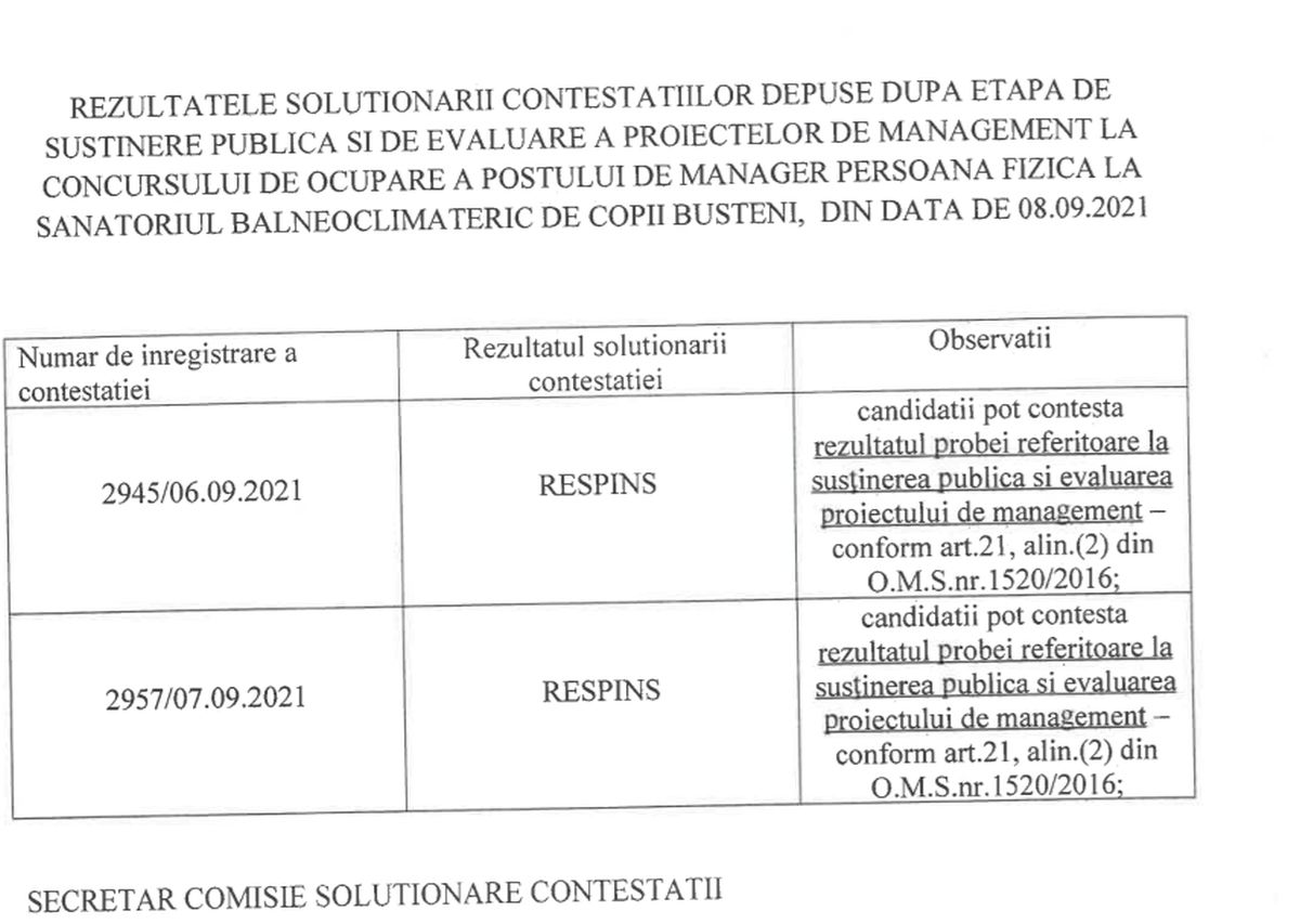 Document: Conform răspunsului oficial al conducerii sanatoriului, din comisia de evaluare a candidaților au făcut parte mai mulți subalterni ai directorului DSP: