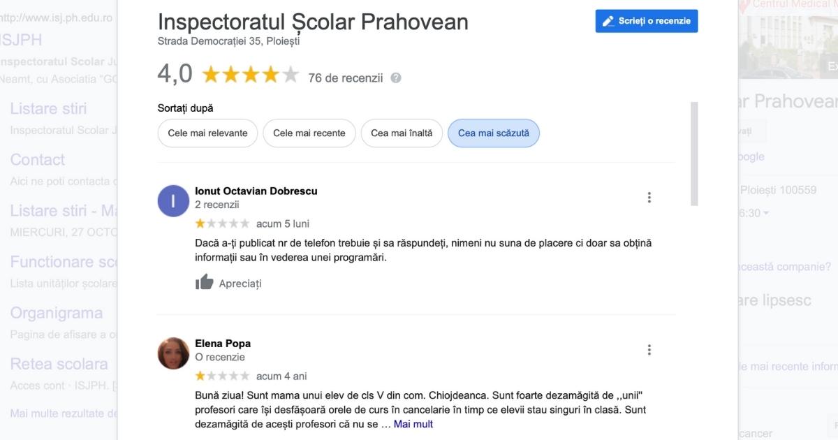 Deși instituția a primit o notă mare din partea utilizatorilor, recenziile negative sunt grăitoare și dezvăluie probleme serioase cu care se confruntă Inspectoratul Școlar Județean Prahova.