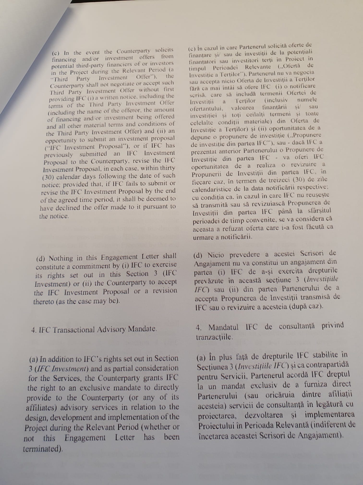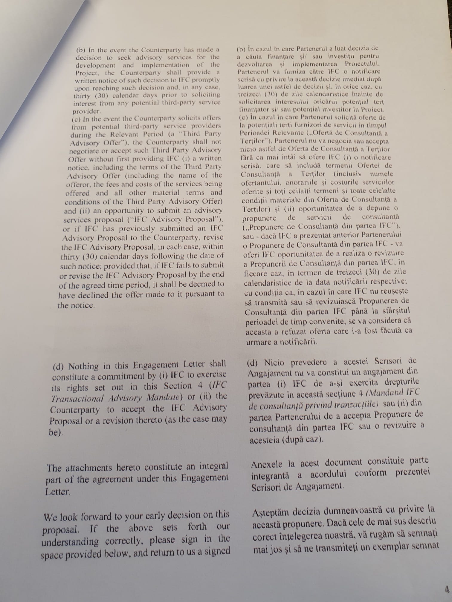 Onorariul de 100.000 de euro, care este nerambursabil, va fi plătit în două tranșe egale: prima la semnarea scrisorii de intenție, a doua la predarea studiului.
