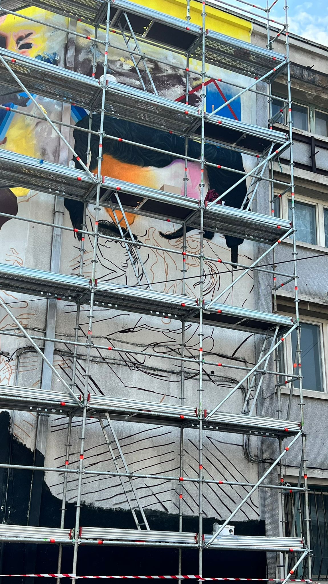 Bogdan Cazacincu stă pe schelă, la peste 10 metri înălțime, de dimineață și până seară, pictând pereții clădirilor din Ploiești. Acesta pregătește o lucrare abstractă formată din trei personaje reprezentative pentru oraș: Caragiale, Toma Caragiu și Nichita Stănescu.