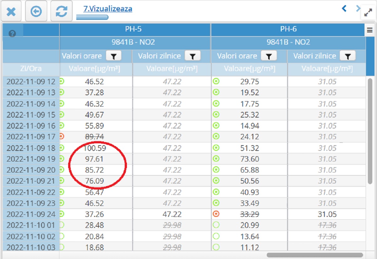 De menționat ar fi că, potrivit calitateaer.ro, valoarea limită orară pentru protecția sănătăţii umane este de 200 ug/m3 NO2, pragul de alertă fiind de 400 ug/m3 – măsurat timp de 3 ore consecutive, în puncte reprezentative pentru calitatea aerului pentru o suprafața de cel puțin 100 km2 sau pentru o întreaga zonă sau aglomerare, oricare dintre acestea este mai mică.
