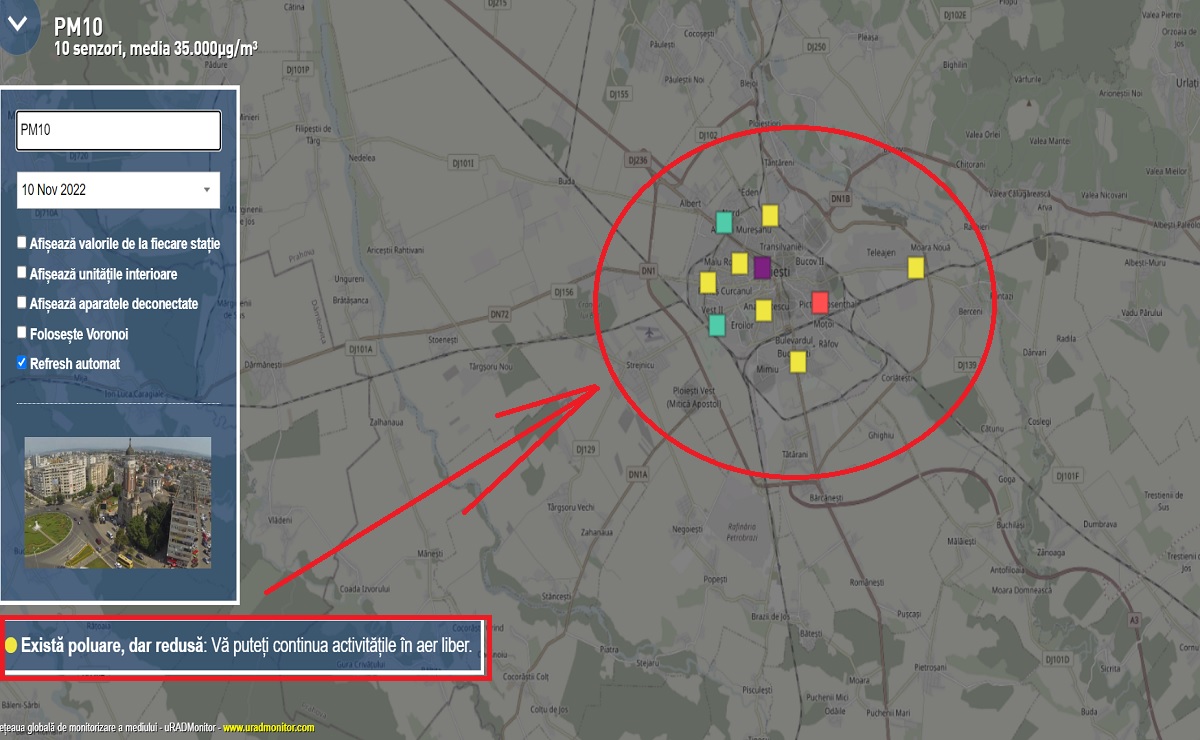 Cu privire la indicatorul PM10, conform site-ului municipalității, există poluare, dar redusă. „Vă puteți continua activitățile în aer liber”, se preciza pe site-ul Primăriei Ploiești.