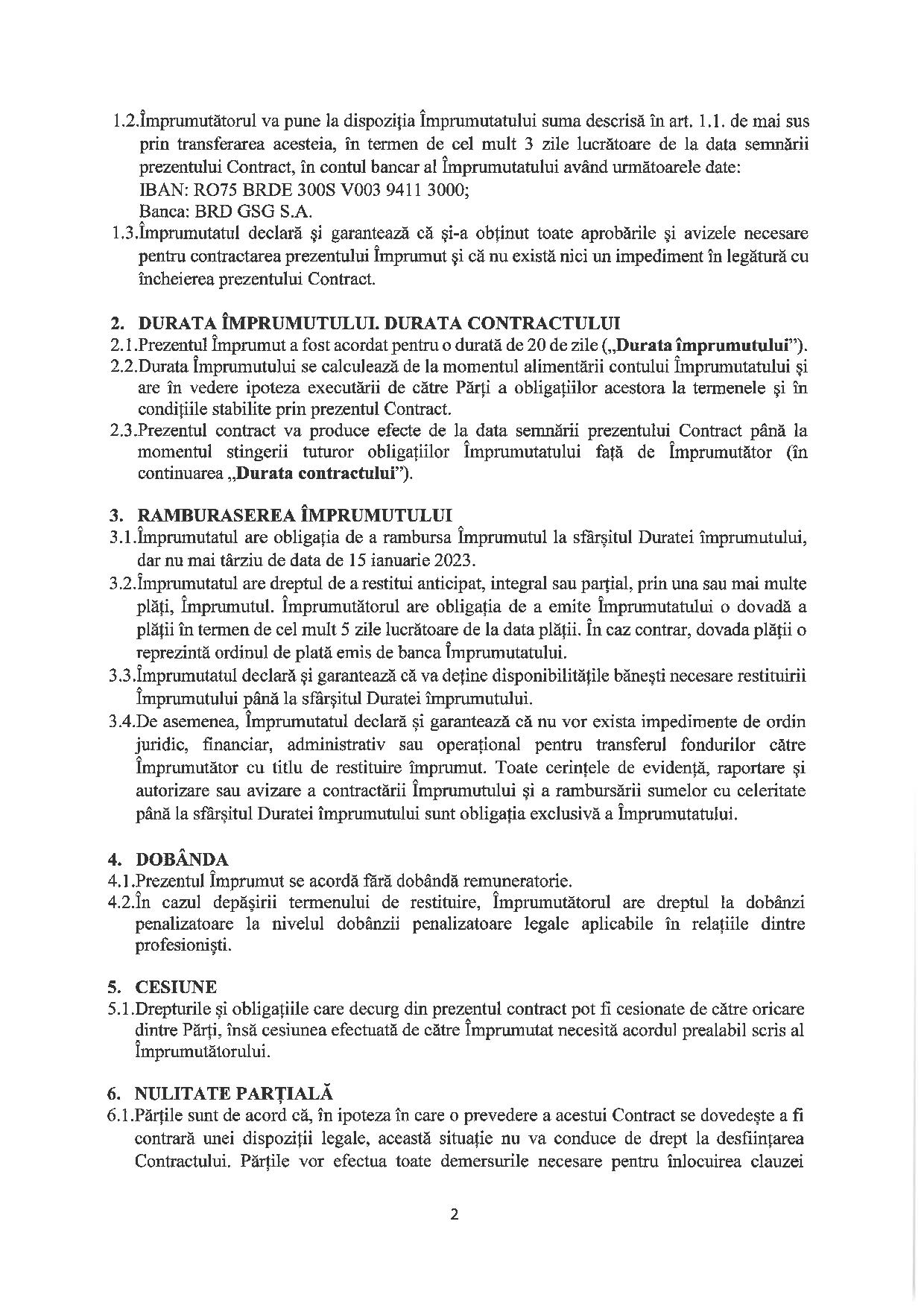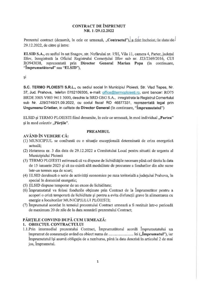 Draftul contractului prin care Termo Ploiești împrumută de la Elsid bani de gaze