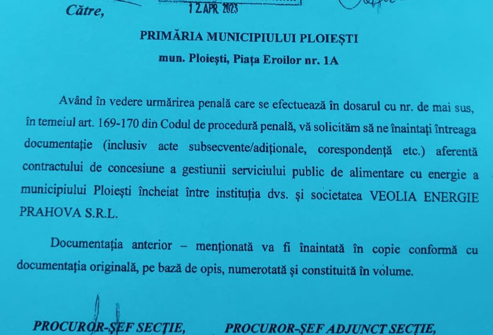 Surse din primărie au confirmat pentru Observatorul Prahovean că procurorii DNA au cerut printr-o adresă din 5 aprilie toată documentația referitoare la contractul de termoficare încheiat de Municipalitate cu Veolia Energie Prahova.