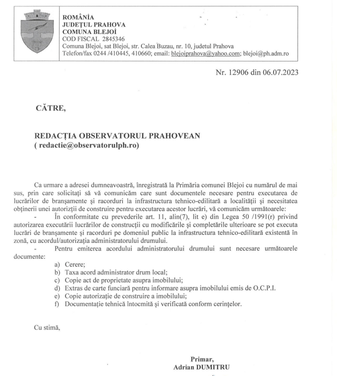 Răspunsul Primăriei Blejoi:
