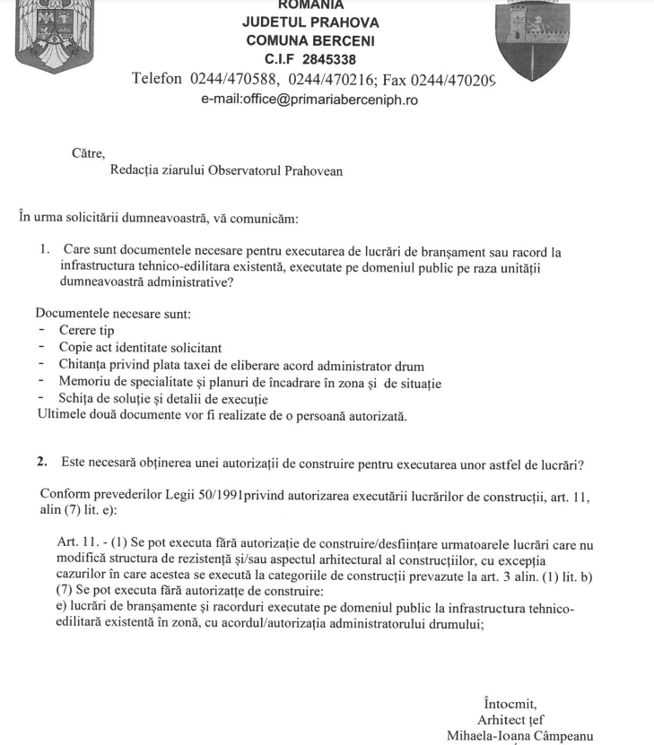 Răspunsul Primăriei Berceni:
