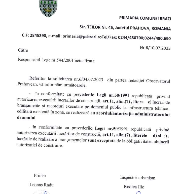Răspunsul Primăriei Brazi: