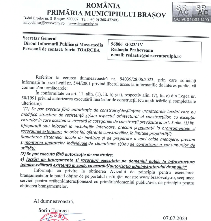 Răspunsul Primăriei Brașov: