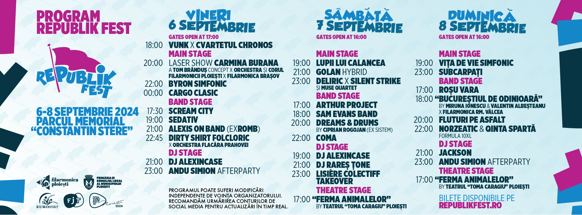 Republik Fest, primul festival fusion-simfonic din România, aduce în Ploiești unele dintre cele mai mari nume ale muzicii românești, punând rock-ul, hip-hop-ul și muzica electronică pe aceeași scenă cu cele mai bune orchestre simfonice din țară.