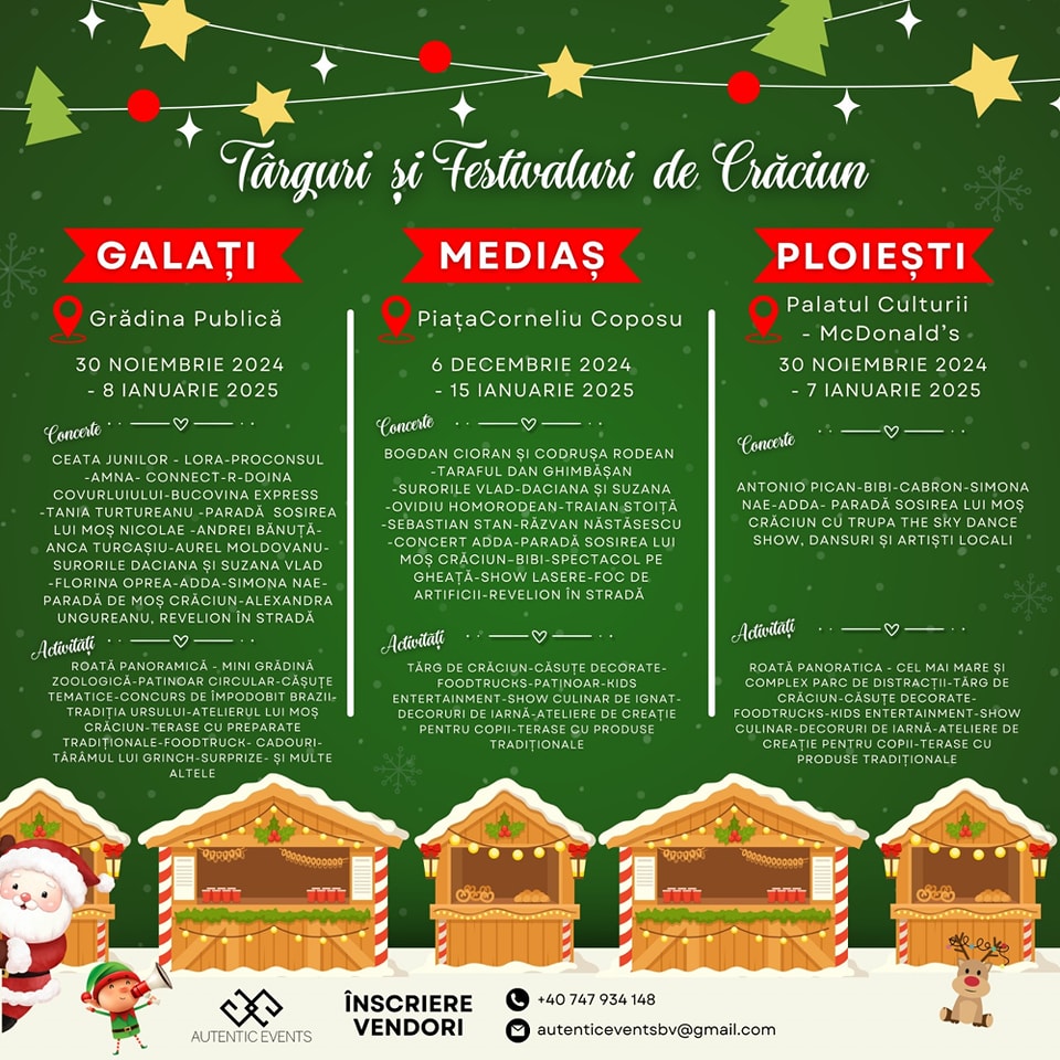 Aceeași firmă organizează în perioada sărbătorilor de iarnă, simultan cu Târgul de Crăciun de la Ploiești, evenimente similare în Galați și Mediaș.