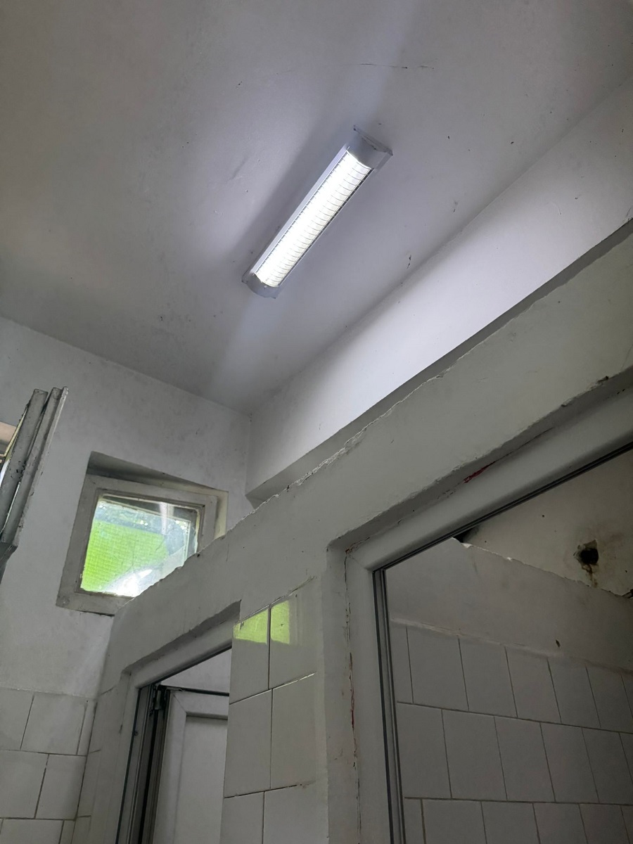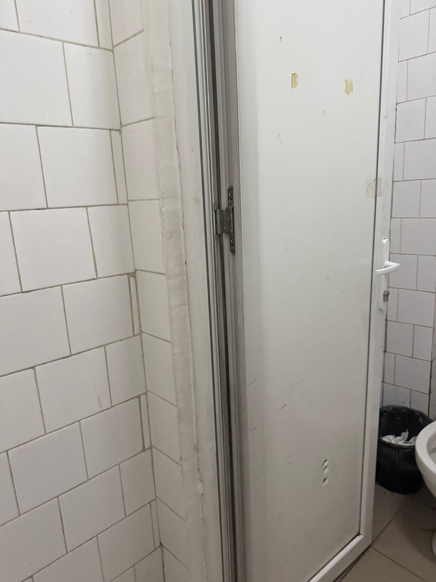 În ceea ce privește băile dedicate pacienților, condițiile sunt de-a dreptul inacceptabile: un neon care abia mai pâlpâie, faianța îmbâcsită de murdărie. Ușile, și ele, murdare și deteriorate și mirosul insuportabil, întăresc ideea de neglijență din partea autorităților.