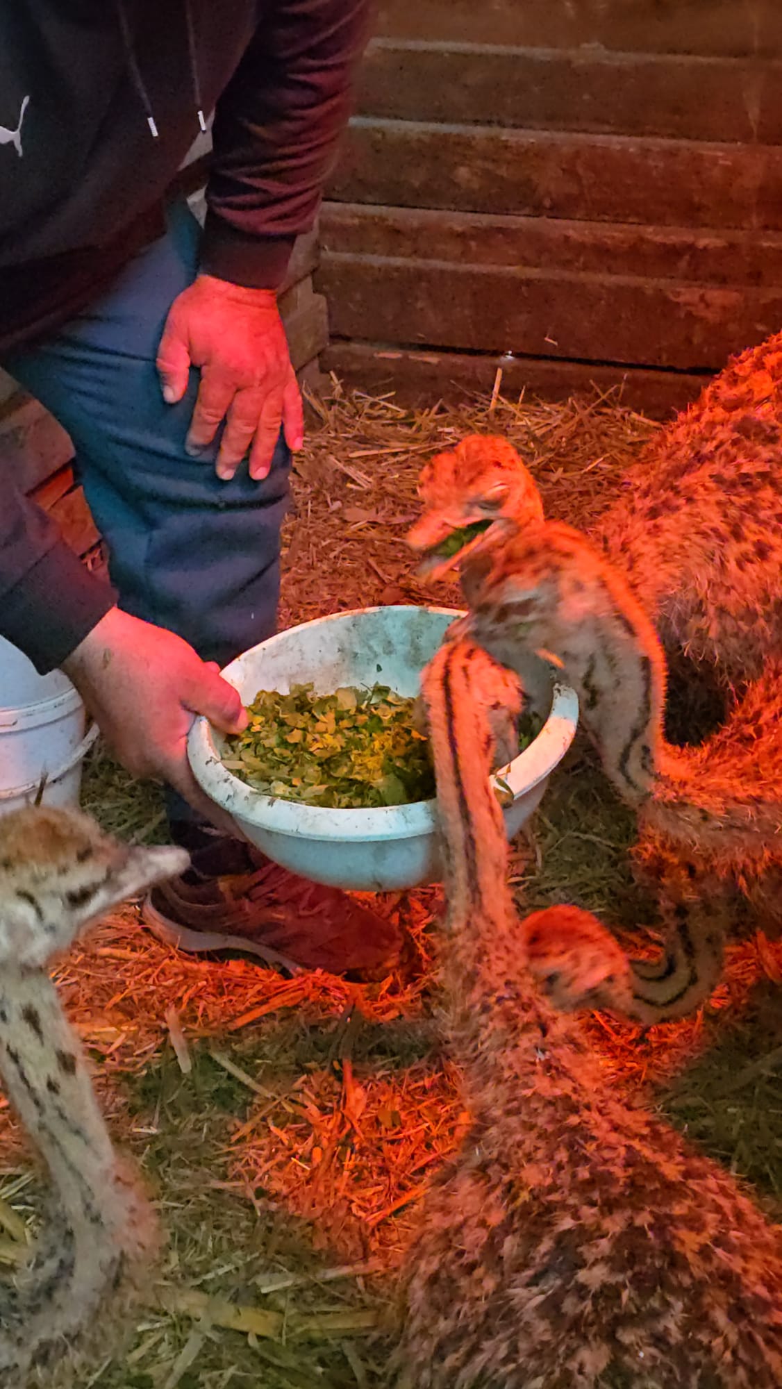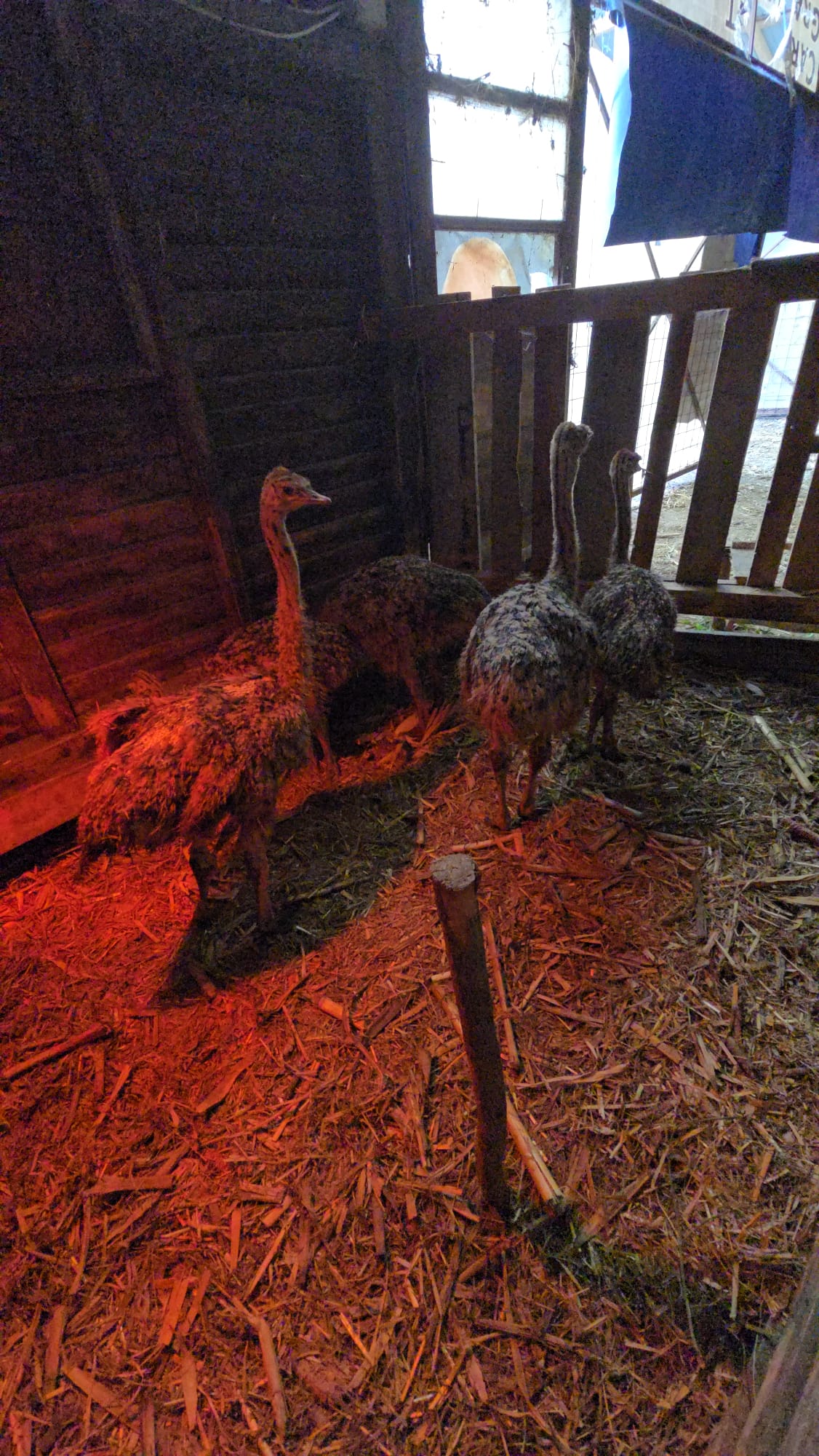 Fermierul a zis să încerce și varianta asta, care pare o afacere profitabilă. Și-a cumpărat câțiva pui de struț african. A fost uimit de ritmul de creștere, 30 de centimetri în două luni.