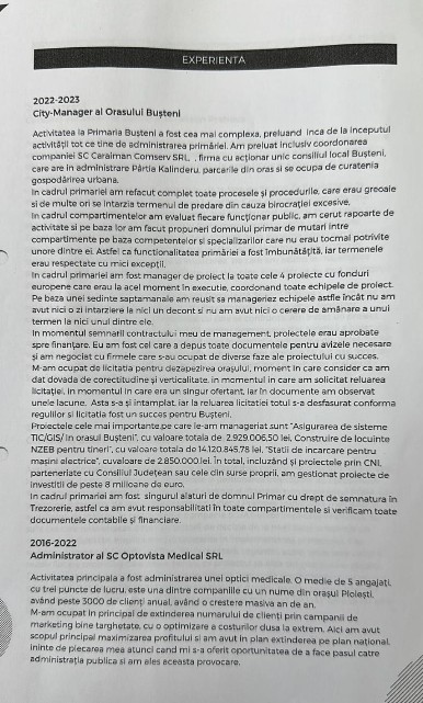 Deoarece CV-ul său nu apare în spațiul online, Observatorul Prahovean îl publicăm mai jos: