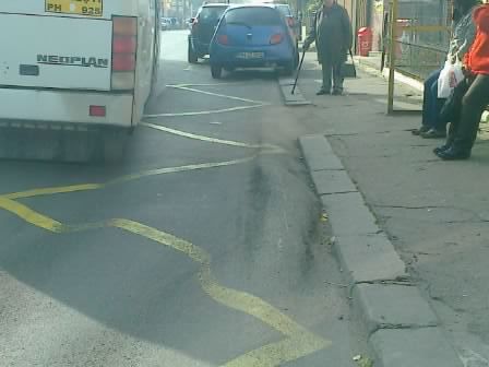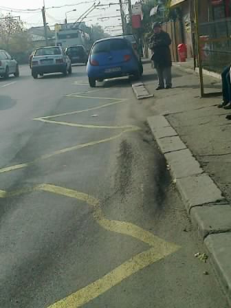 Din cauza asfaltului de proastă calitate, în staţia respectivă s-au format "valuri", peste care trec mijloacele de transport în comun. Asta nu i-a împiedicat pe cei care au marcat staţia respectivă să tragă dungi cu vopsea galbenă peste gropi!