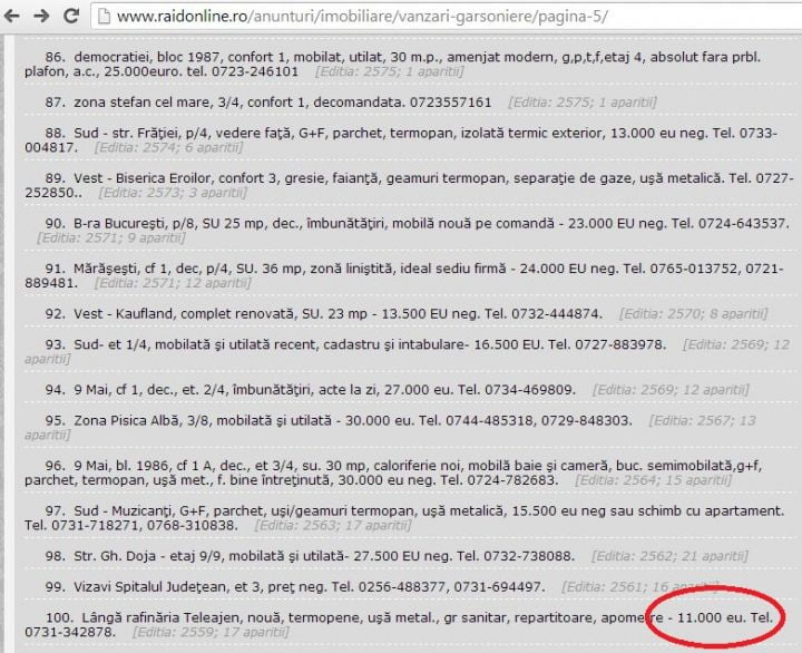 Potrivit raidonline, o garsonieră în colonia Teleajen costă 11.000 euro