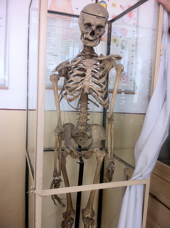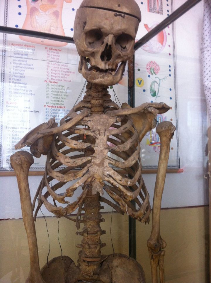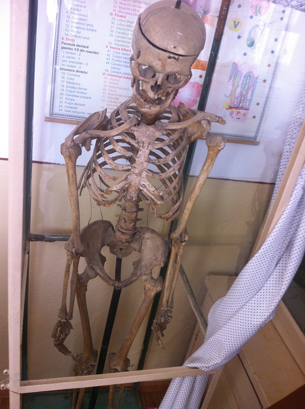 Elevii de la o școală din Prahova au ca material didactic scheletul fostului profesor. Dascălul a vrut să fie folositor și după moarte. Așa că a cerut ca scheletul său să fie donat, în scopuri educaționale, la școala unde a predat ani la rând.
