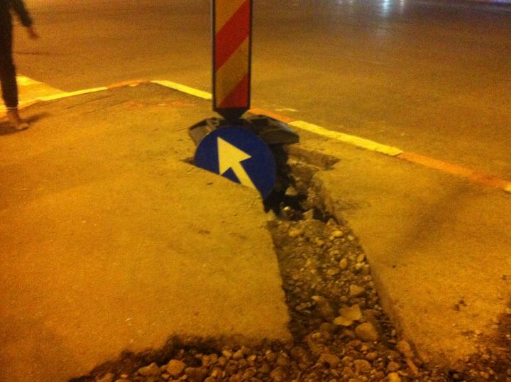 Marcaj groapă intersecția Șoseaua Vestului – Bulevardul Republicii