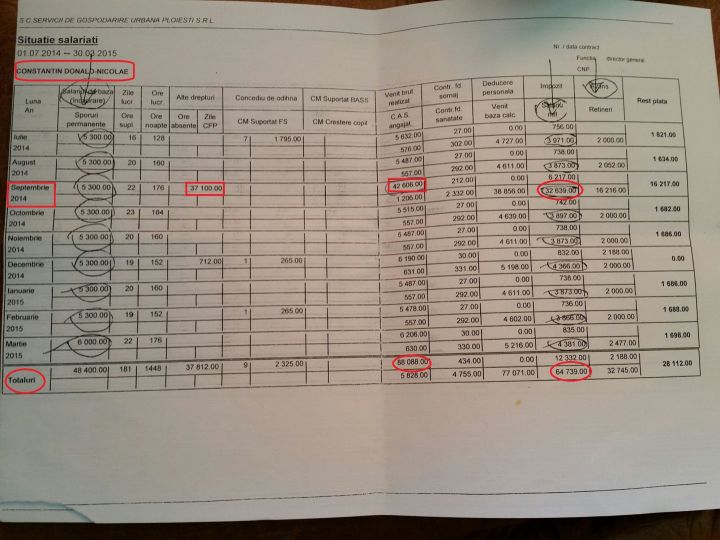 Acesta a fost prezent la ședința Consiliului Local Ploiești din 23 aprilie, când directorul general Donald Constantin a declarat că nu a primit nicio primă de la SGU, deși avea acest drept. Ștatul de plată publicat de observatorulph.ro îl contrazice, acesta fiind beneficiarul a trei prime: de Paște și de Crăciun (712 lei brut, 500 lei net), respectiv bonus de performanță, 37.100 lei brut. Detalii AICI