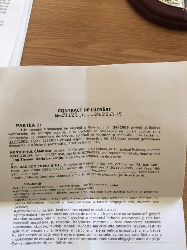Vezi mai jos contractul de asfaltare care a declanșat scandalul monstru între primar și vice, la Câmpina.