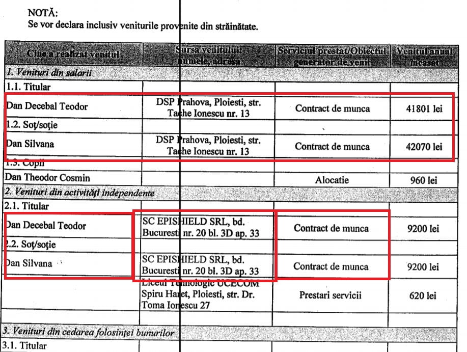 Medicul primar de epidemiologie, Decebal Dan, coordonatorul Departamentului SUPRAVEGHERE EPIDEMIOLOGICA SI BOLI TRANSMISIBILE din cadrul Direcției de Sănătate Publică Prahova este administrator și asociat, alături de soția sa, angajată și ea la DSP Prahova, la firma EPISHIELD SRL, al cărei obiect de activitate îl reprezintă” Activități de asistență medicală specializată”. Înființată în 2011, societatea respectivă a ajuns la o cifră de afaceri raportată în 2016 la 85.100 de lei, respective un profit de 11.672 de lei.