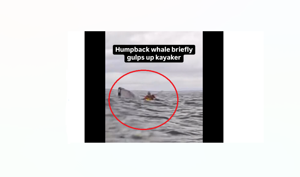 Mamiferul l-a înghițit pe tânăr cu tot cu caiac în câteva secunde. În mod miraculos, balena l-a aruncat înapoi în mare, cruțându-i viața.