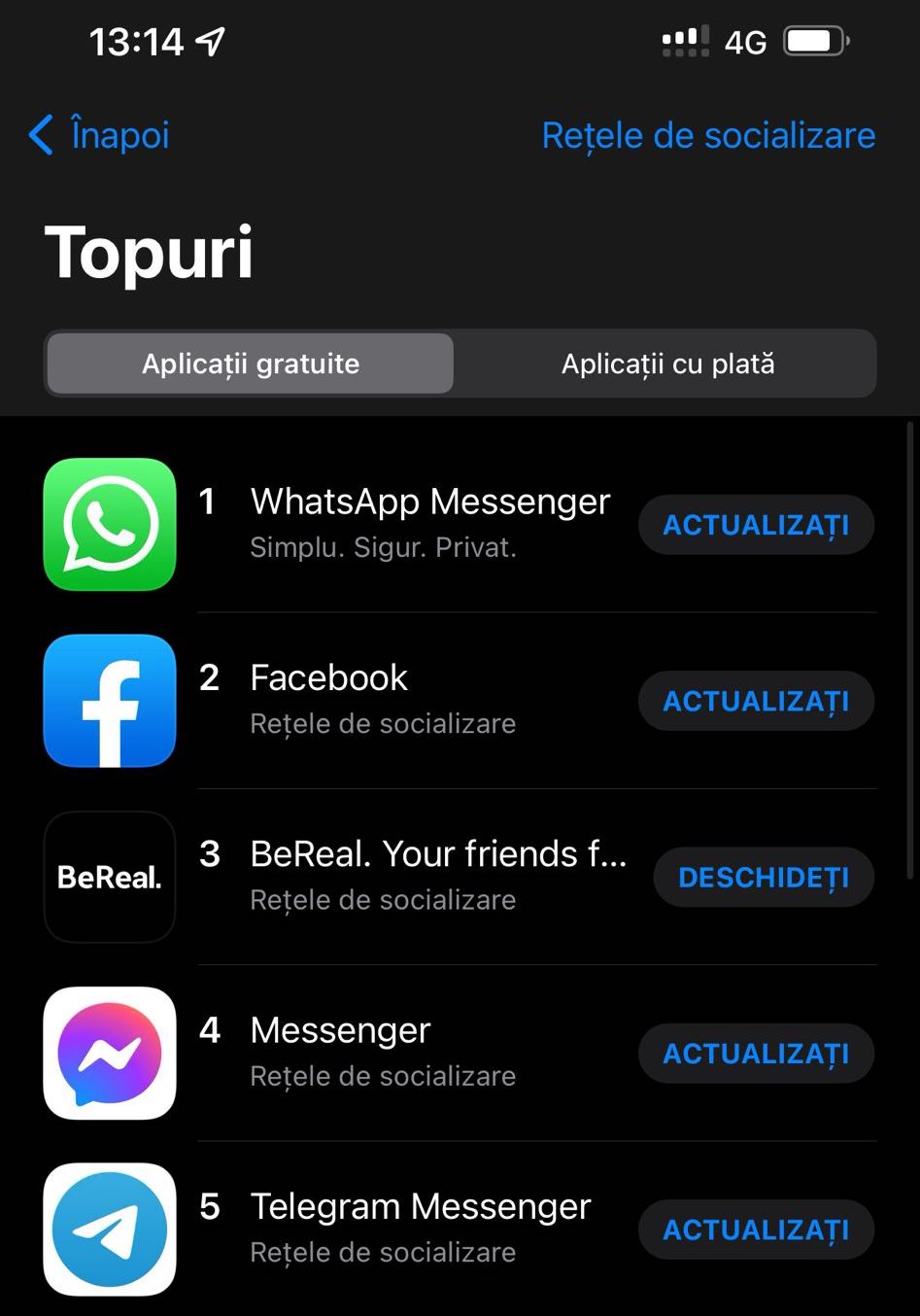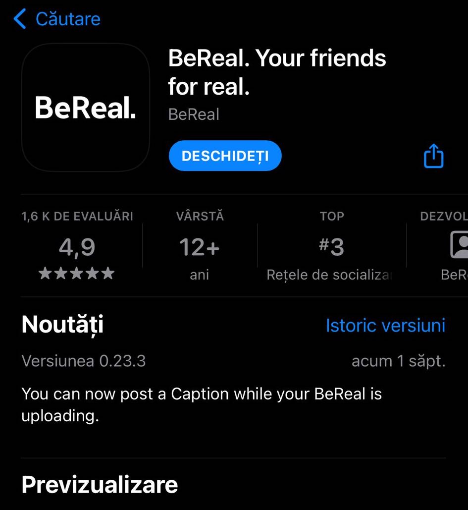 BeReal este o nouă rețea de socializare care acaparează utilizatorii din toată lumea. În prezent, BeReal se află pe locul 4 în topul celor mai descărcate aplicații din categoria rețele de socializare de pe AppStore.