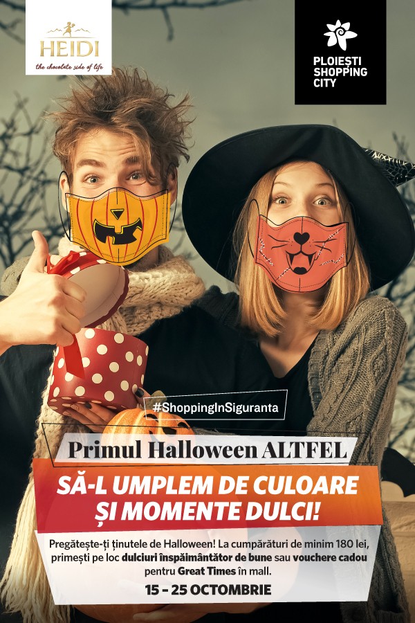 În perioada 15 – 25 octombrie, Ploiești Shopping City a pregătit oaspeților săi o campanie promoțională care să îi ajute să își coloreze ținutele de Halloween. Cu mesajul ”Primul Halloween ALTFEL. Să-l umplem de culoare și momente dulci!”, campania îi incurajeaza pe vizitatori să continue să se bucure de evenimentele și momentele speciale din an și le oferă motive să se relaxeze și să se binedispună. Astfel, clienții care fac cumpărături în valoare de minimum 180 lei, din colecțiile de toamnă ale magazinelor de fashion din Ploiești Shopping City, vor primi garantat vouchere pentru cumpărături în valoare de 20 lei sau ciocolată marca Heidi