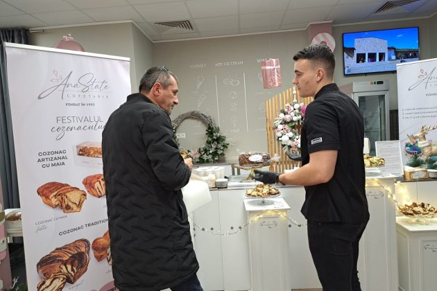 „Ne-am gândit că vin sărbătorile și lumea ar trebui să știe ce vindem. Sunt cozonaci deosebiți, dar trebuie gustați pentru a înțelege acest lucru…”, spune Alex State. Care însă nu are deloc timp să dea mai multe detalii deoarece în magazin este un du-te-vino permanent.
