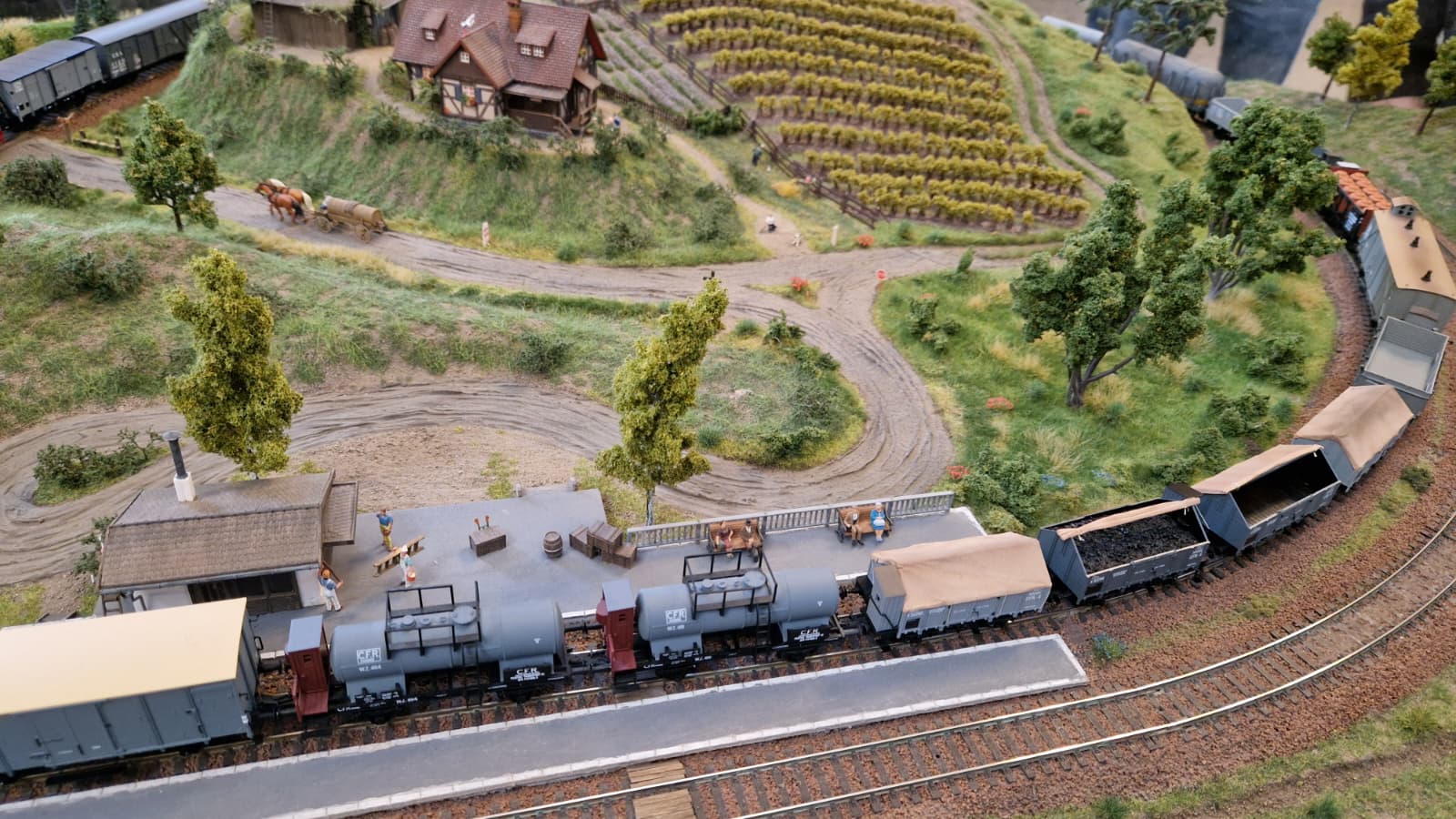 Scroafa cu purceii sau caii care pășteau liniștiți, la umbra copacilor, veneau în completarea peisajului modulelor. Și, pe lângă toate acestea, treceau trenurile, manevrate impecabil de voluntarii înscriși la această expoziție.