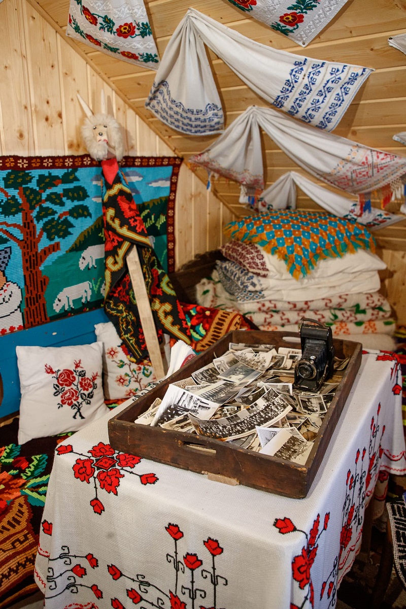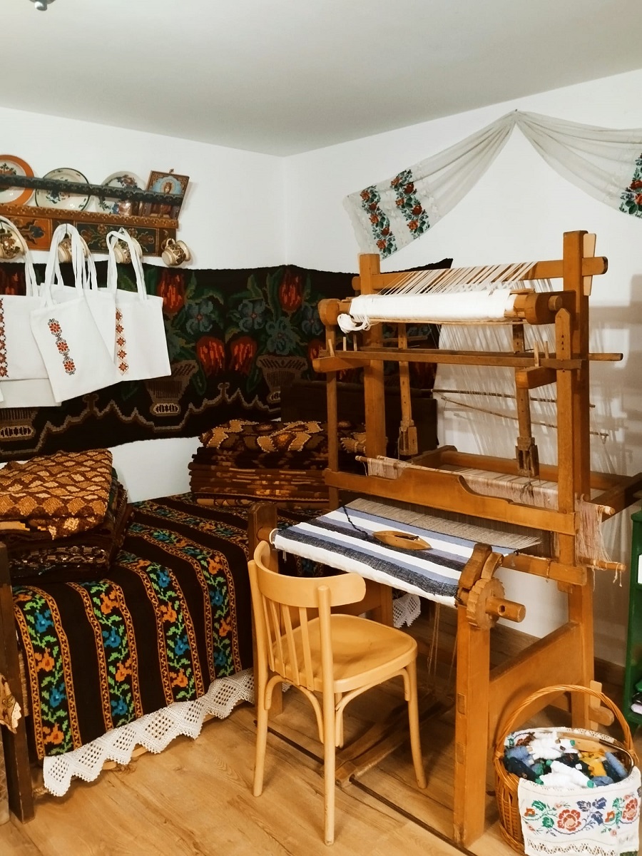 „În celelalte camere avem muzeul, aici vă puteți întoarce puțin în timp, să resimțiți mirosul de odinioară, să admirați colecția de ii, ștergare, țesături, poze alb-negru, aparate foto. Tot aici am războiul de țesut dar este și spațiul unde, de cele mai multe ori, facem ateliere cu doritori”, explică, mândră, aceasta.