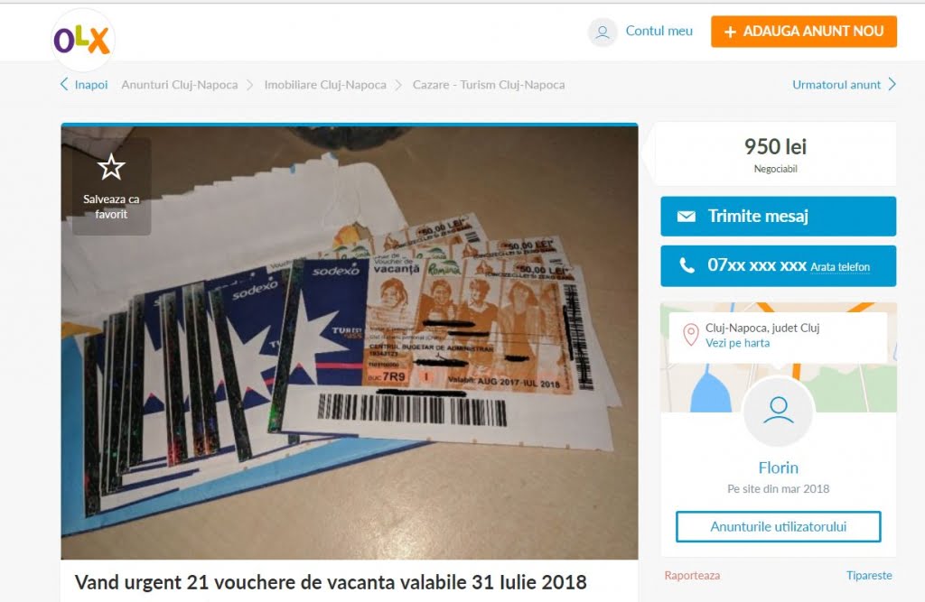 Unii bugetari, care și-au primit deja voucherele de vacanță, le-au și pus în vânzare pe internet. Tranzacția este ilegală, potrivit legislației în vigoare.