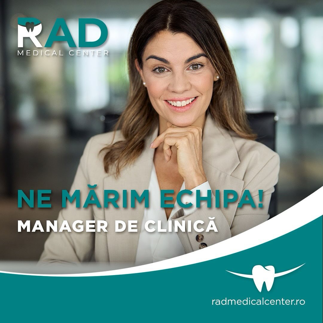 Rad Medical Center, o renumită clinică stomatologică din Ploiești, caută manager. Dacă ești pasionat de domeniul medical, ai spirit antreprenorial și capacități excepționale de conducere, atunci ești candidatul ideal.