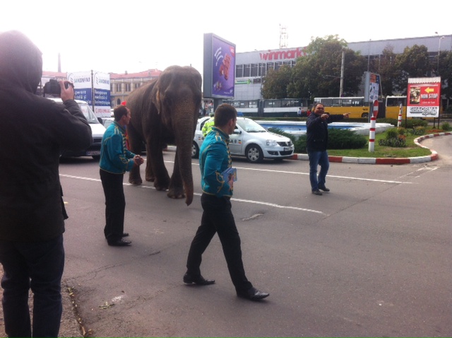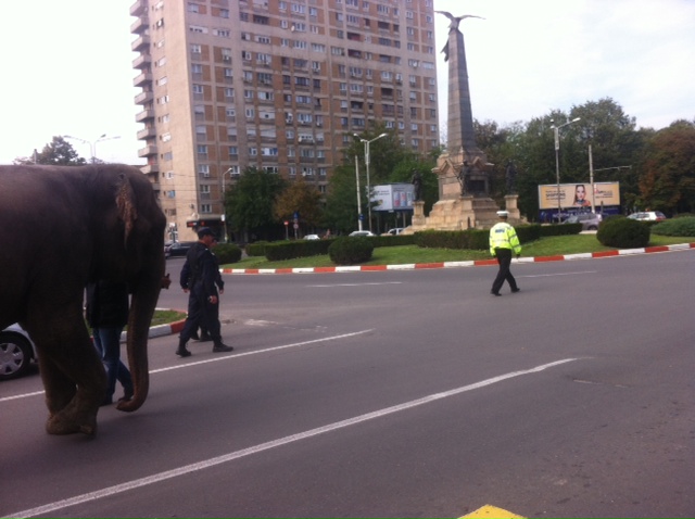 Mai multe echipaje ale poliției, jandarmeriei și poliției locale au însoțit-o astăzi, într-o plimbare pe Dani, femela elefant a unui circ, care va susține spectacole la Ploiești.